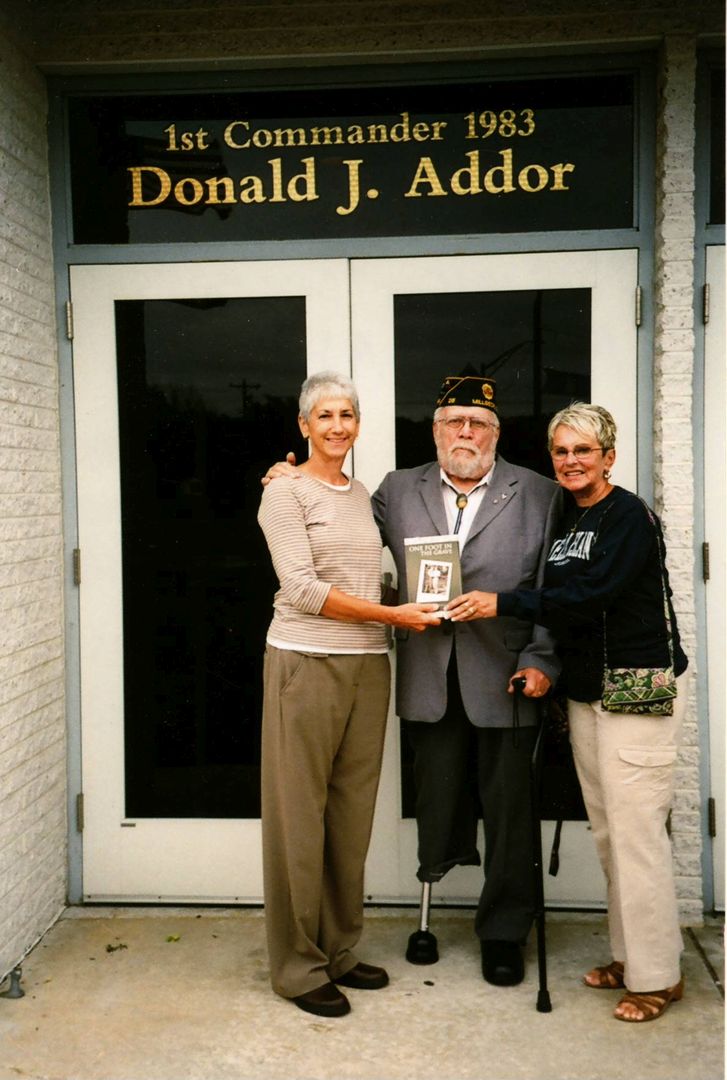 Me at my American Legion Post in front of the Hall just dedicated to me. Part you can't see says MEMORIAL HALL. The ladies are members of the Aux who helped me get my latest book published -- "One Foot in the Grave: My Life on an Artificial Leg".